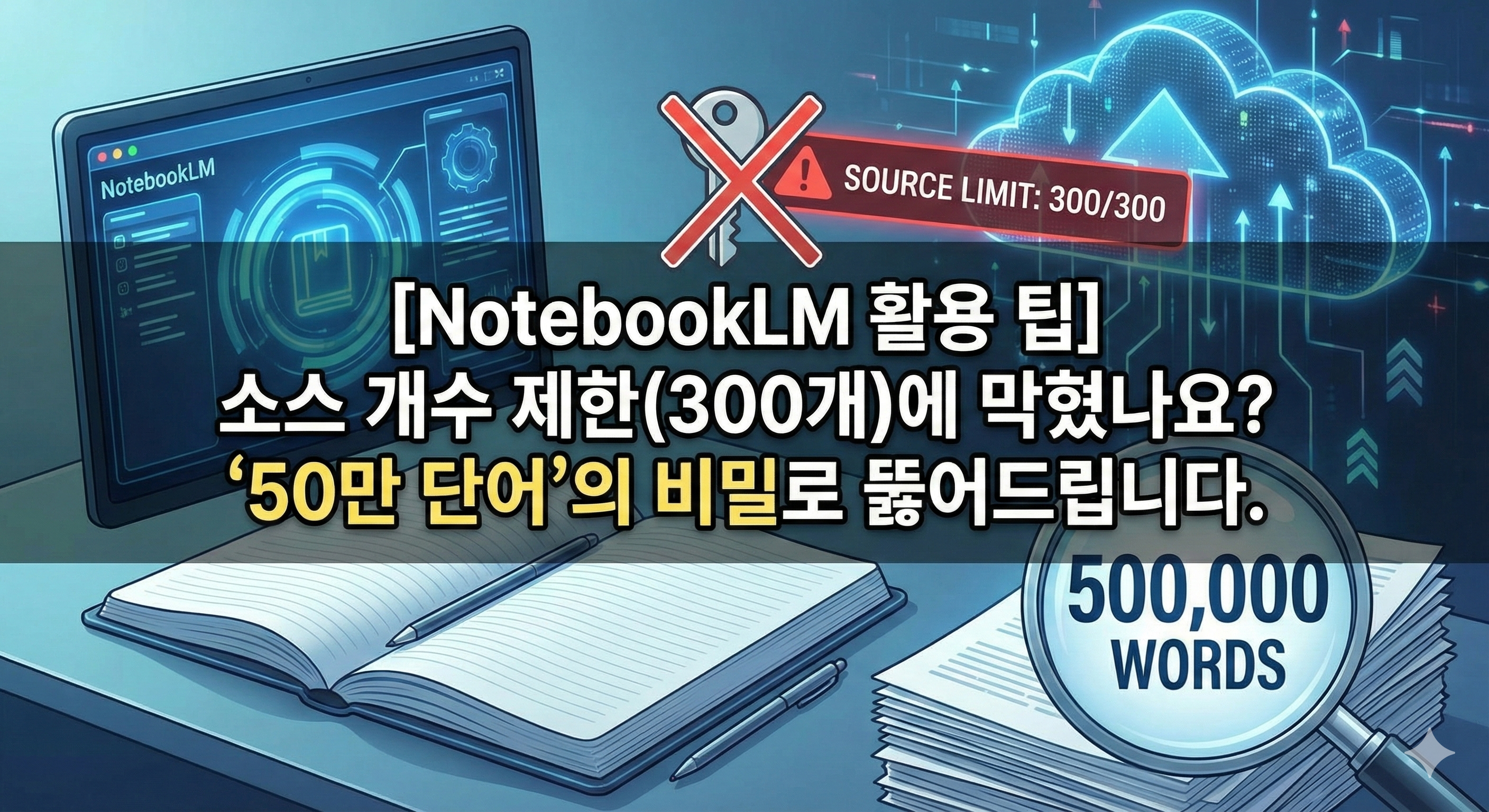 하지만 NotebookLM을 헤비하게 사용하시는 분들이라면 필연적으로 마주치는 벽이 하나 있습니다. 바로 **'소스 개수 제한'**입니다. 오늘은 많은 분이 오해하고 계신 소스 제한의 진실과, 추가 비용 없이 이 한계를 극복할 수 있는 결정적인 팁인 **'50만 단어의 마법'**에 대해 깊이 있게 다뤄보겠습니다.