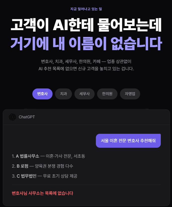 만약 AI가 머뭇거리거나, 엉뚱한 대답을 하거나, 혹은 경쟁사만을 줄줄이 읊어댄다면 비상벨이 울린 것과 같습니다. 과거에는 포털 검색 결과 2페이지에 밀려난 것 정도의 타격이었다면, 지금은 '존재하지 않는 브랜드'로 낙인찍힌 것과 다름없습니다.