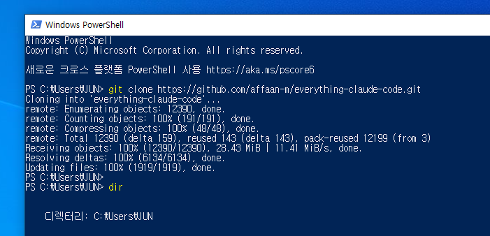 - 폴더 이동: cd everything-claude-code